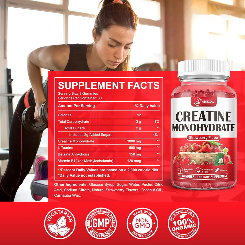 Gomitas de Creatina Pre-Entrenamiento Especialmente Diseñadas, Gomitas de Creatina con Vitaminas, Gomitas de Monohidrato de Creatina para Hombres y Mujeres, Aumentan la Fuerza