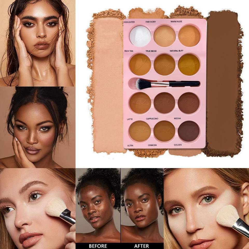 Brocha de Maquillaje Micolor Compacta de Doce Orificios, Diseñada Especialmente para Contorno, Cobertura, Iluminación y Minerales