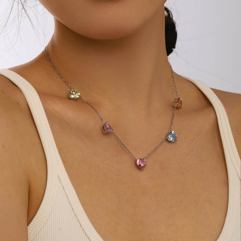 Collar de tenis de cadena de eslabones coloridos de joyería fina especialmente seleccionada con Zirconia cúbica en forma de corazón de Plata de Ley 925 5A