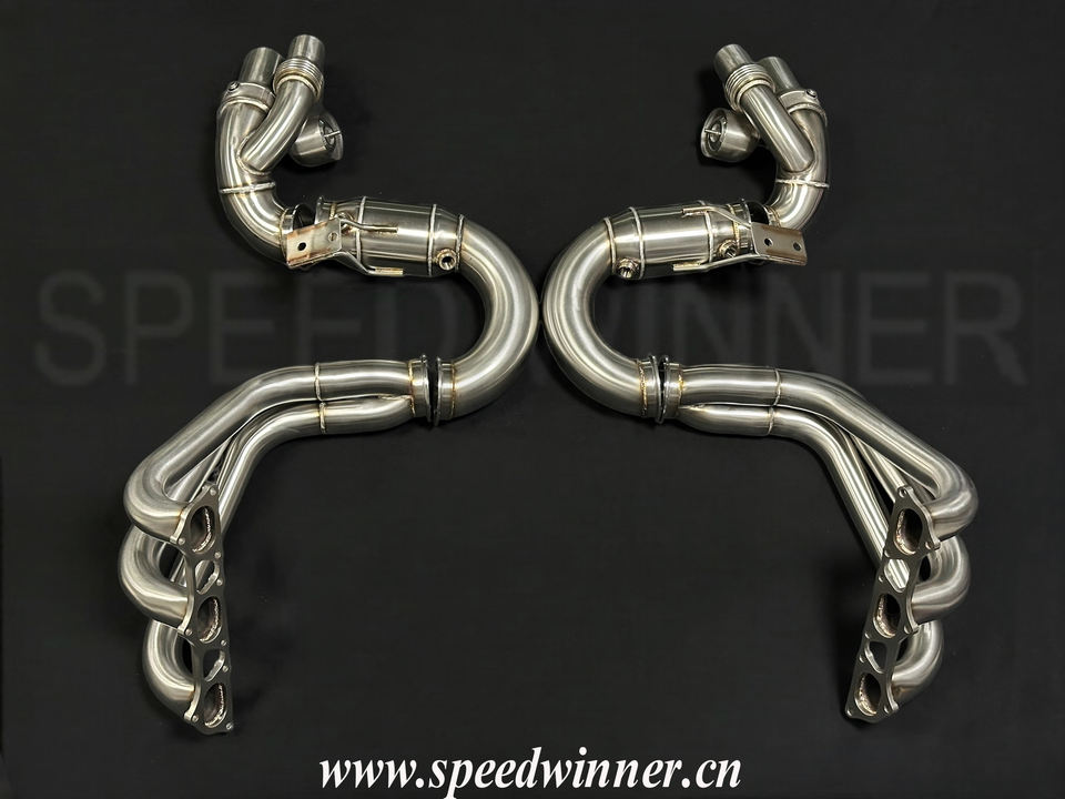 SpeedWinner nuevo estilo fábrica 304 sistema de escape inoxidable Acero Y tubo + cabezales + catalizador para Porsche 911 991,1 991,2 GT3/GT3 RS