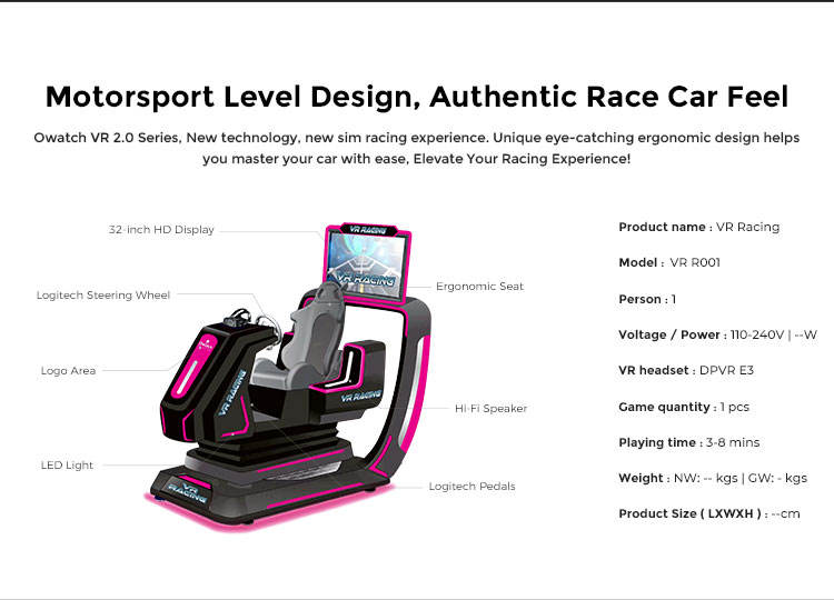 Escenarios de uso:Diversión de VR, centro de juegos de arcada, parque temático de VR, centro comercial