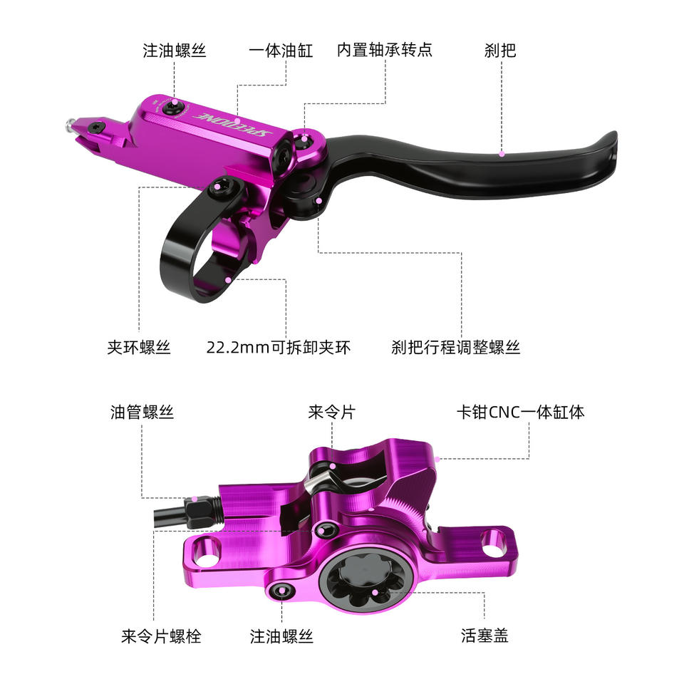 Freno de Disco Hidráulico de Doble Pistón Speedone para Bicicleta de Montaña, Cilindro Integrado, Calibre de 2 Pistones, Aluminio Forjado, Palanca de 2 Dedos