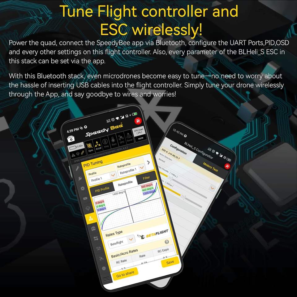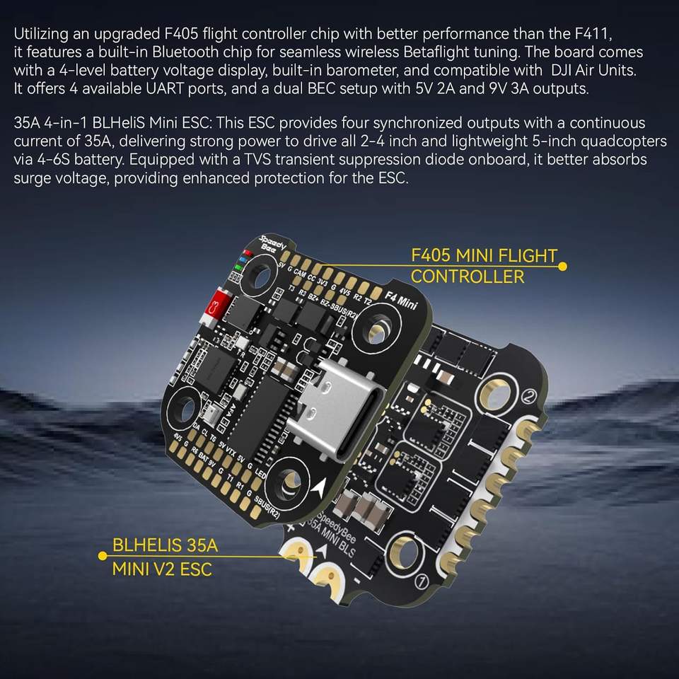 SpeedyBee F405 Mini Stack BLS 35A 4 en 1 ESC para Bluetooth FC Wireless Tuning 3-6S Flight Stack Compatible con Drones al aire libre