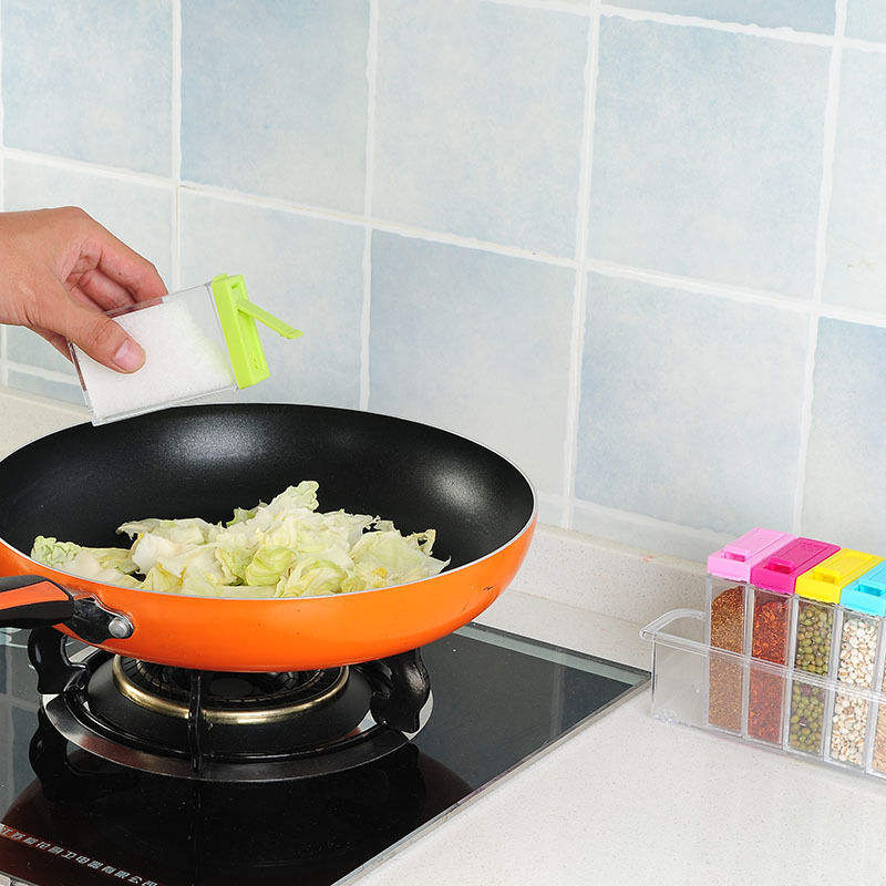 Juego de Frascos para Especias, Almacenamiento de Condimentos, Recipientes Cuadrados Transparentes para Sal, Azúcar, Pimienta, Especias, con Bandeja y Soporte