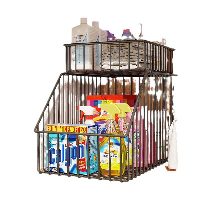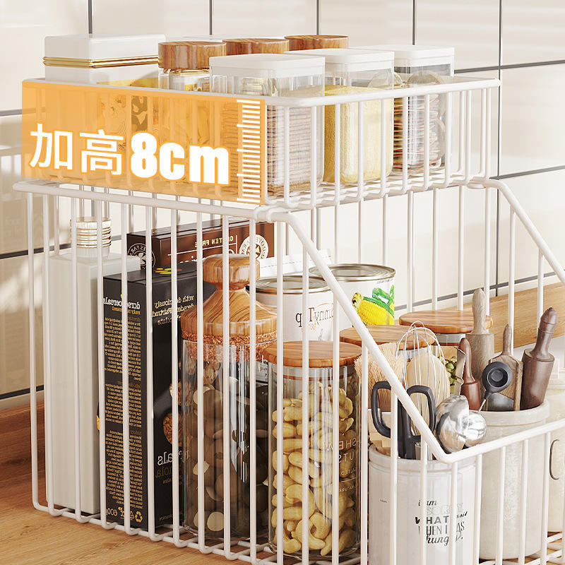 Cesta de almacenamiento escalonada para especias, tamaño L, apilable, organizador de gabinete de cocina para especias y condimentos