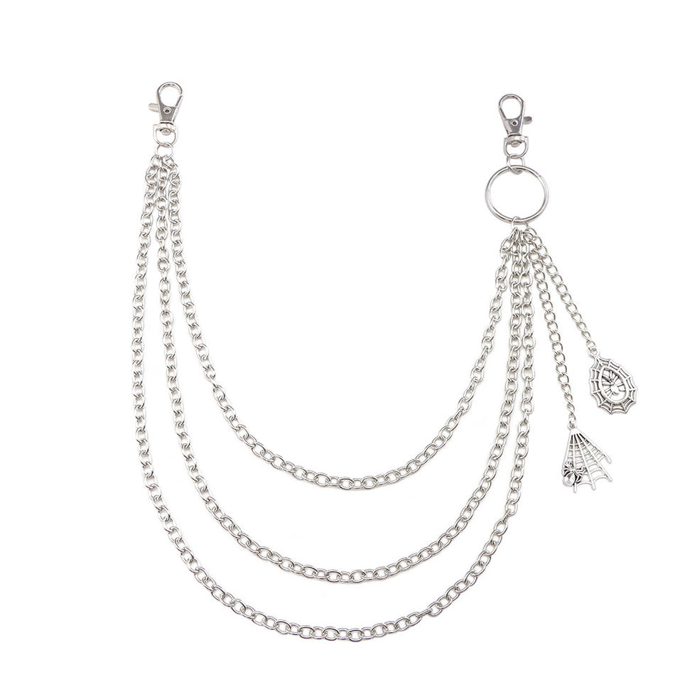 Cadena de cintura informal estilo hip hop con colgante de telaraña, de metal multicapa, color plata tibetana blanca K