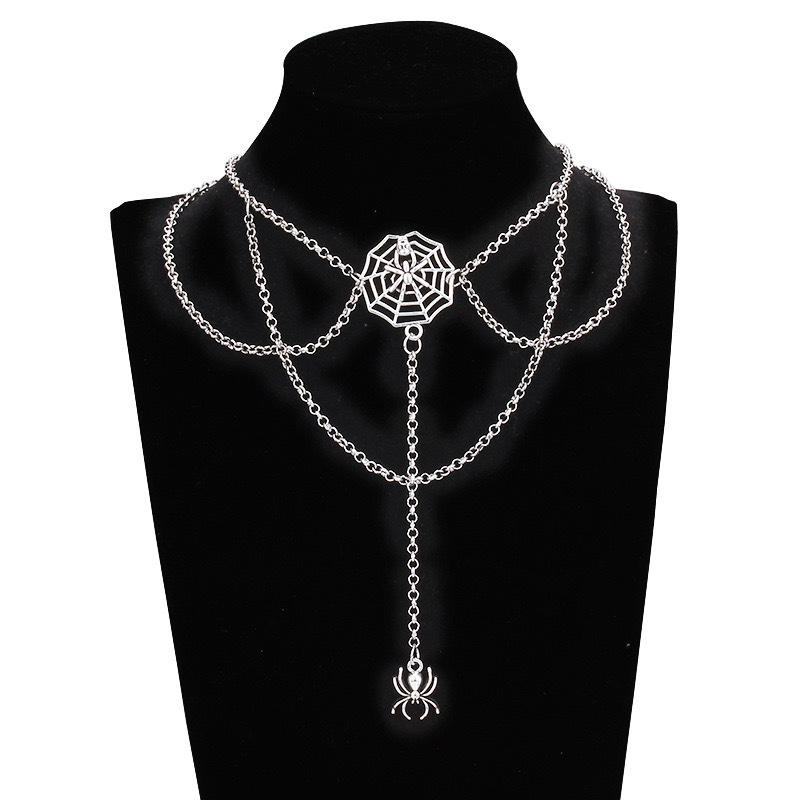Collar con colgante de telaraña, joyería gótica de Halloween de varias capas, cadena en tono plateado con dije de araña para mujer