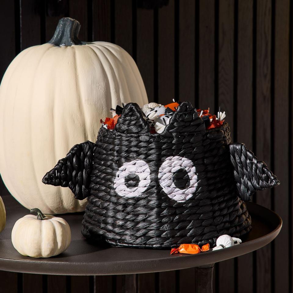 Cesta de almacenamiento con forma de araña para decoración de habitación infantil con temática de Halloween, cestas trenzadas de jacinto de agua