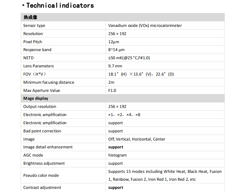 NETD:≤ 50 mK(@ 25 °C,F #1,0)