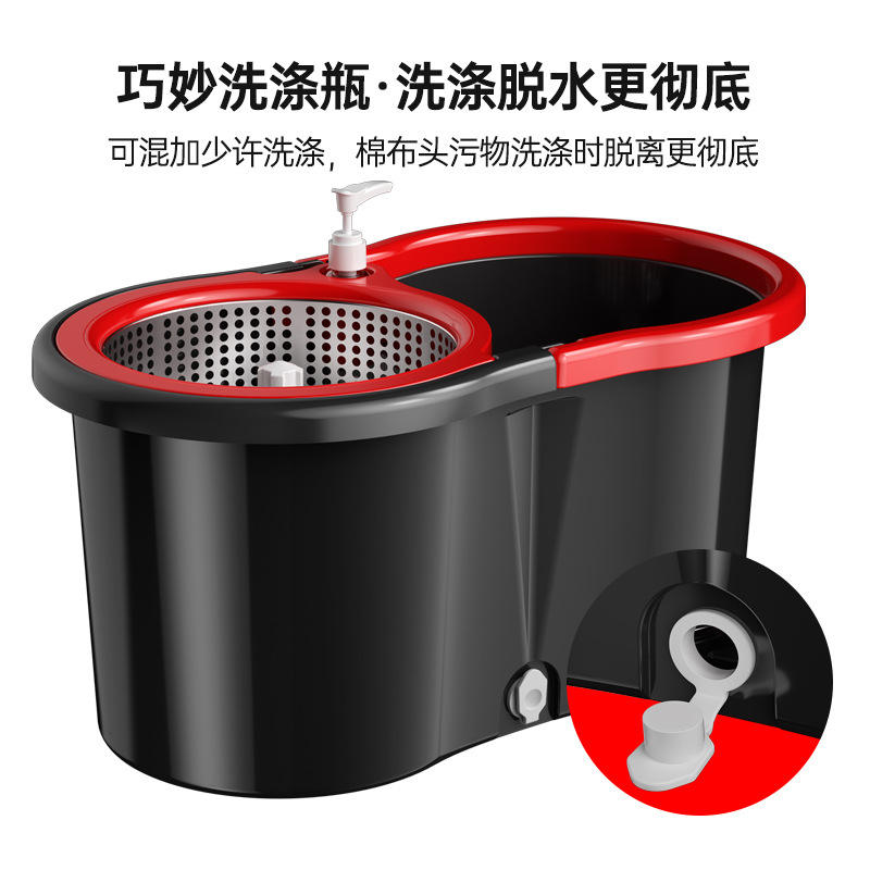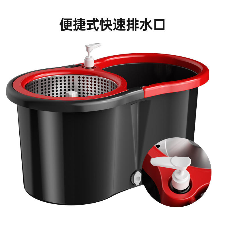 Juego de fregona giratoria con cubo, mopa de microfibra y cesta metálica para limpieza del hogar, diseño rectangular negro S620