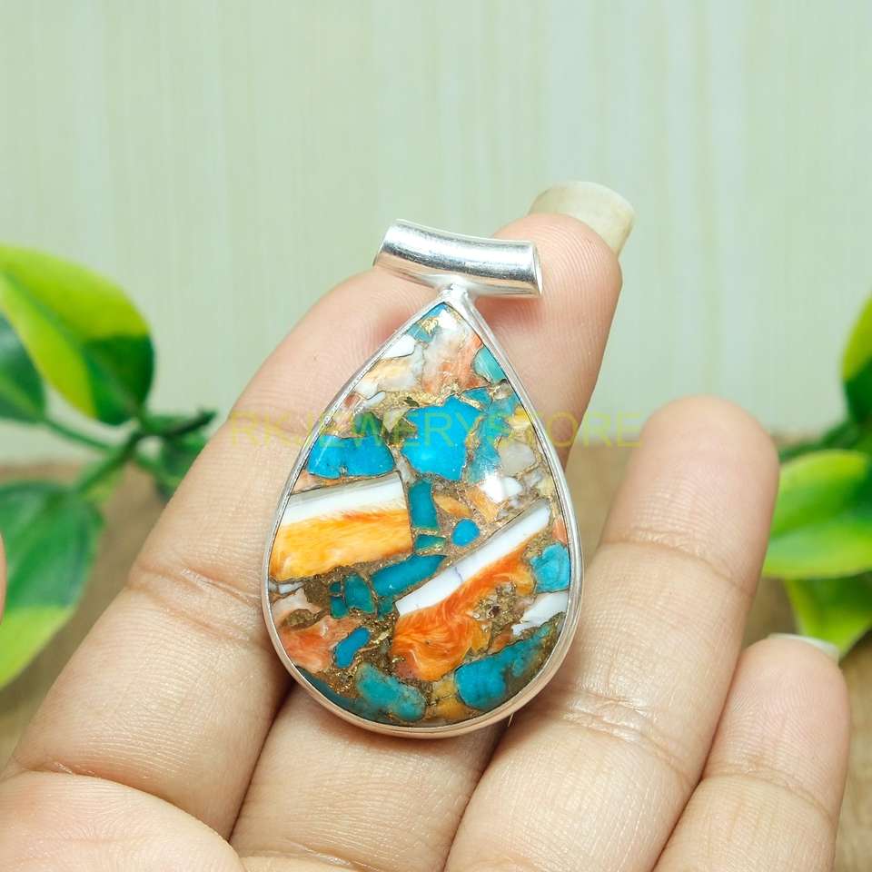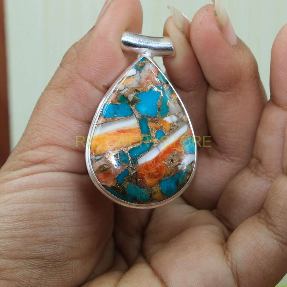 Nombre o palabras:Colgante de mosaico de turquesa de ostra espinosa
