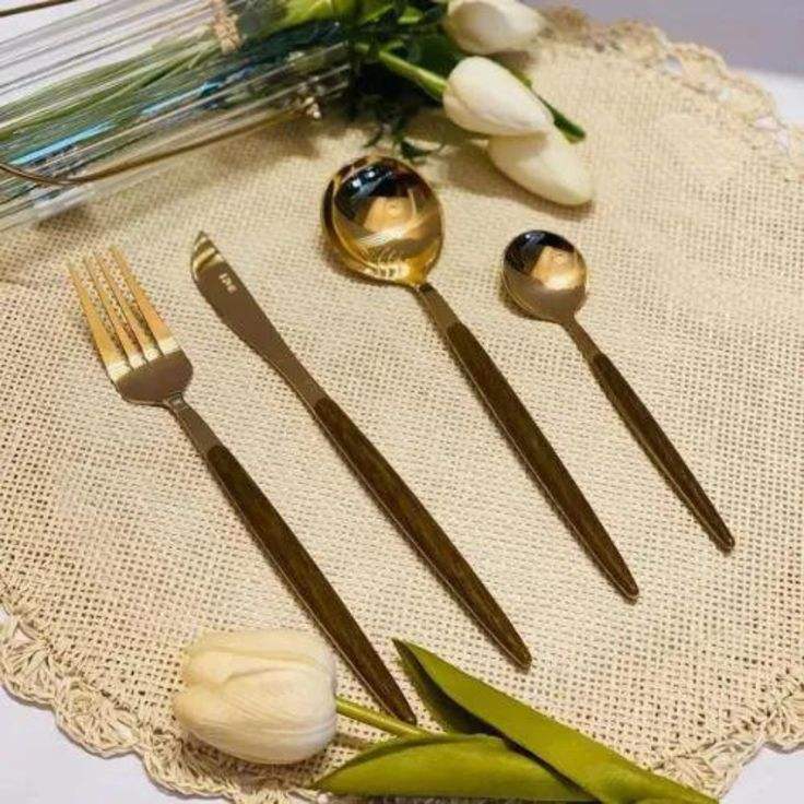 Espléndido juego de cubiertos de metal, perfecto para entretener invitados, con un aspecto moderno y un rendimiento confiable.