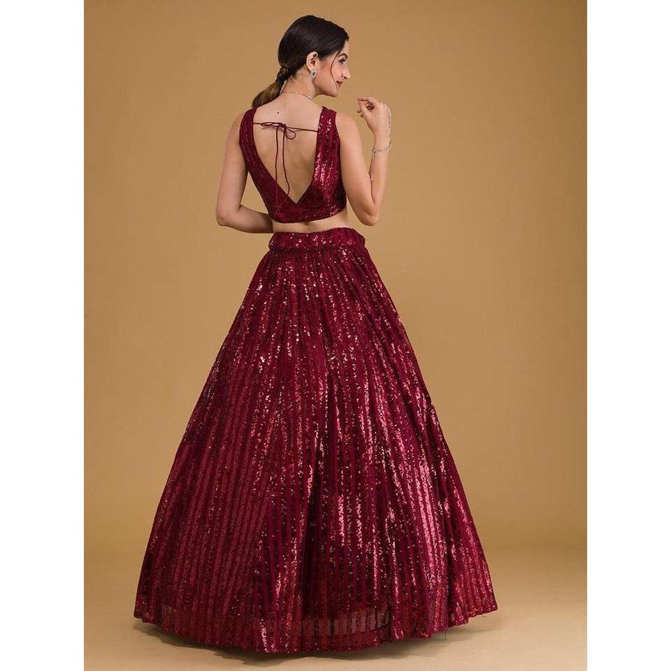 Espléndido rojo bordado Georgette compromiso desgaste Lehenga Choli