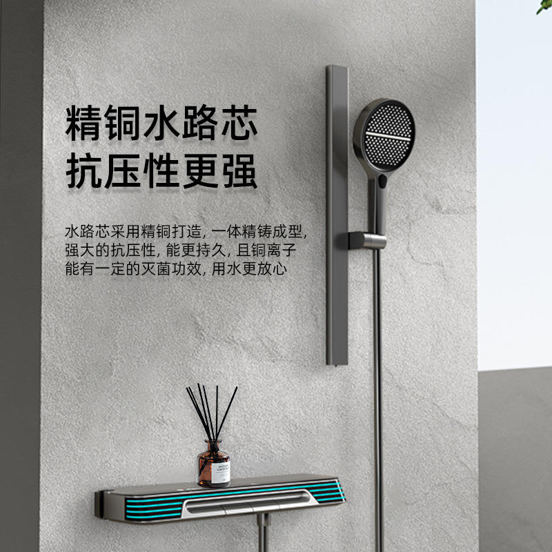 Juego de ducha de tipo dividido KDa 8116, gris bronce, cromo mate, pulverización de temperatura constante, rectangular, portátil, licenciado, privado