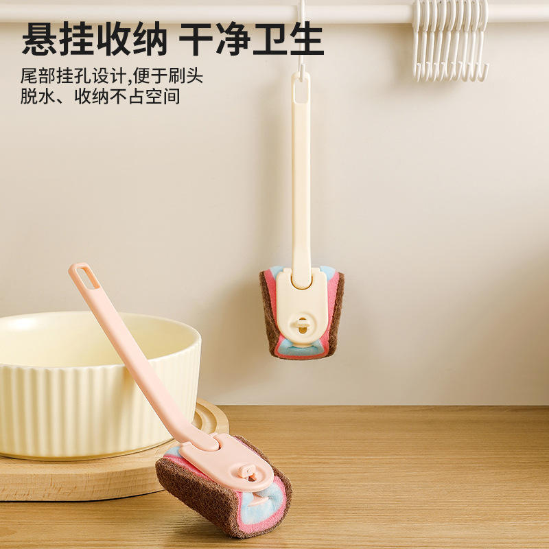 Sponge Clip Brush Long Handle Kitchen Dishwashing Cleaning Brush Replaceable Hanging Storage Dish Brush