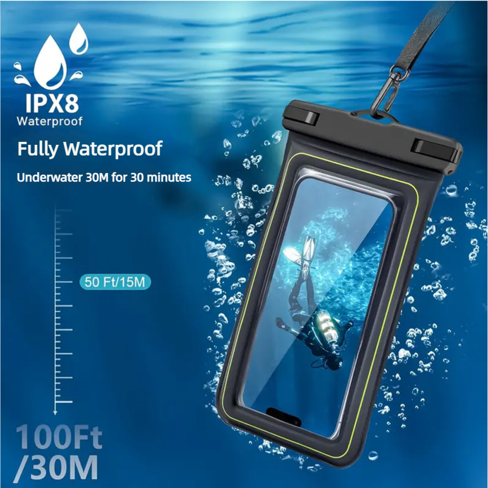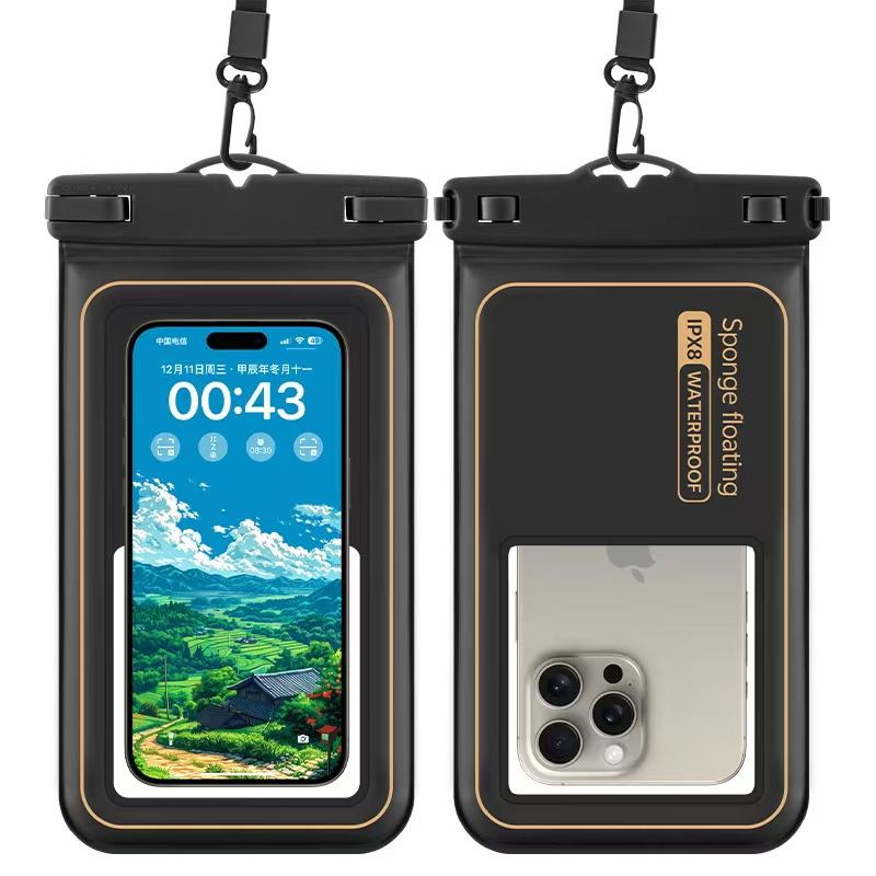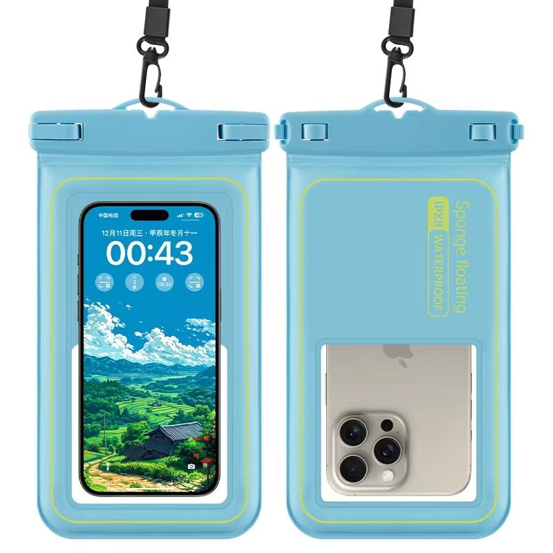 Funda Impermeable para Teléfono Móvil con Pantalla Táctil de PVC Esponjoso, Bolsa Seca Flotante para Natación con Cordón