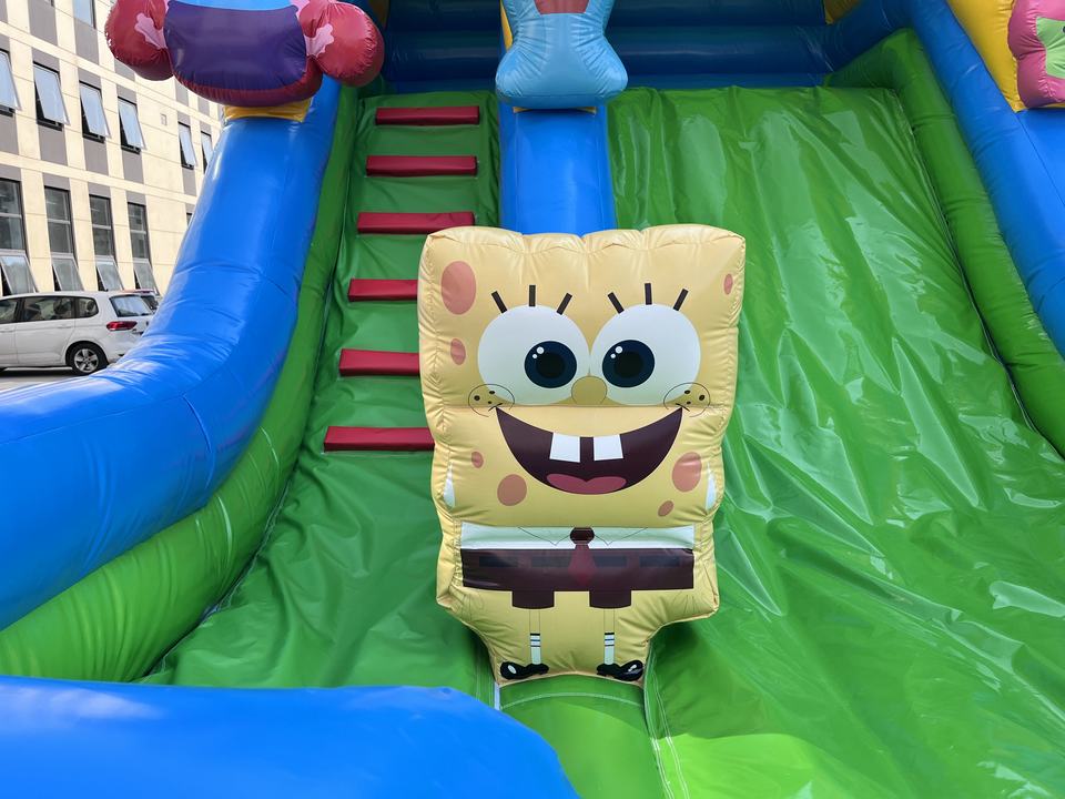 Fábrica temática de Bob Esponja-Castillo inflable personalizado Trampolines y toboganes para niños al aire libre de bajo costo