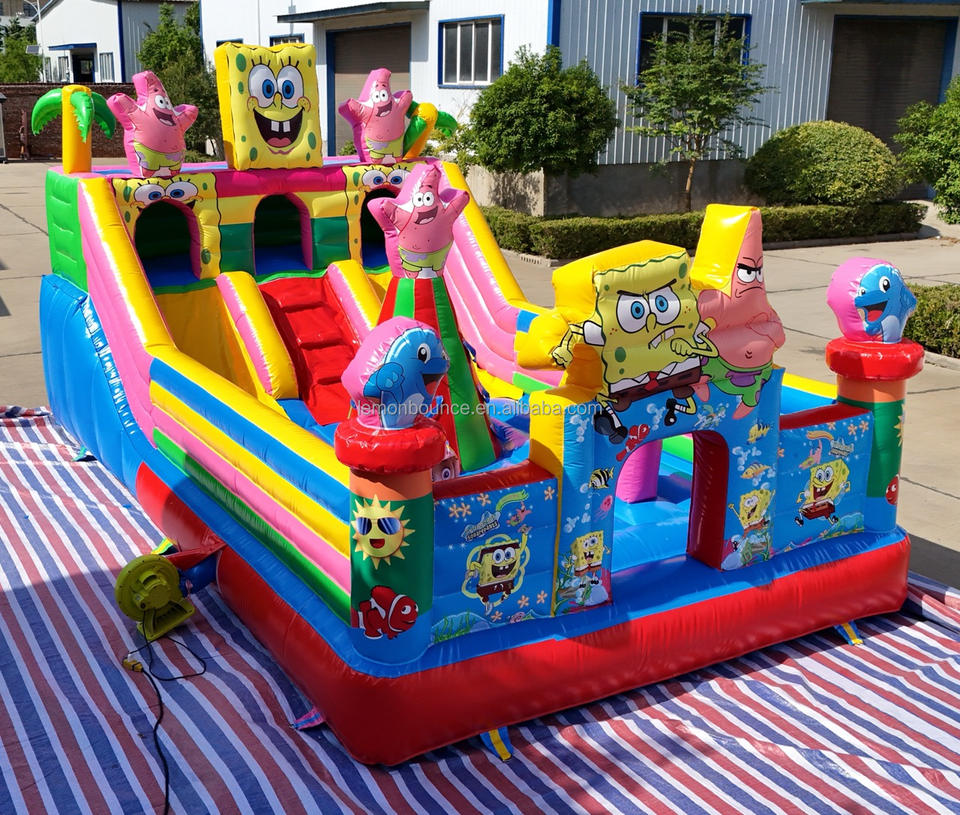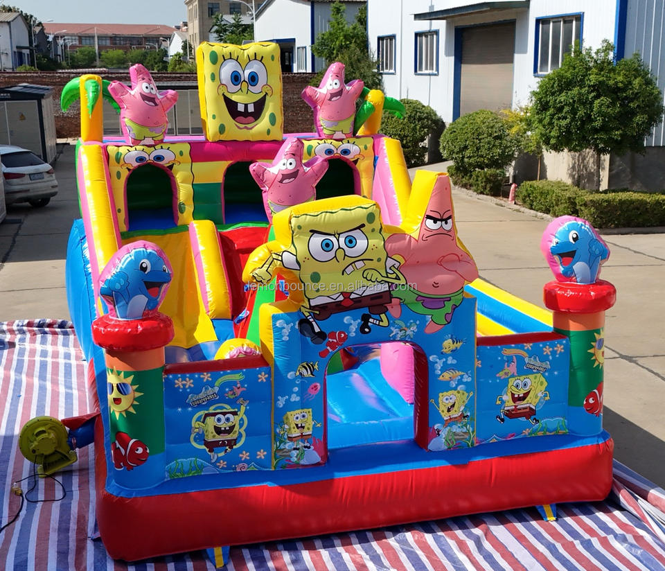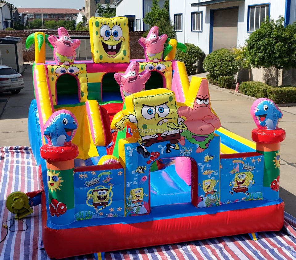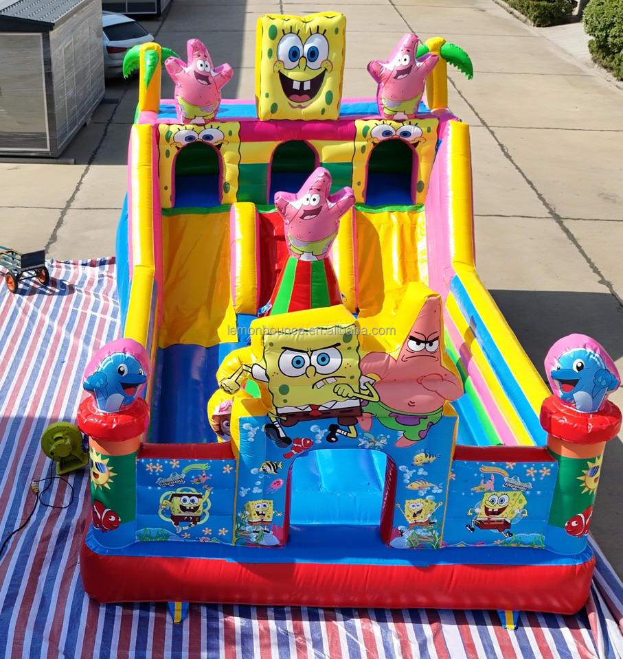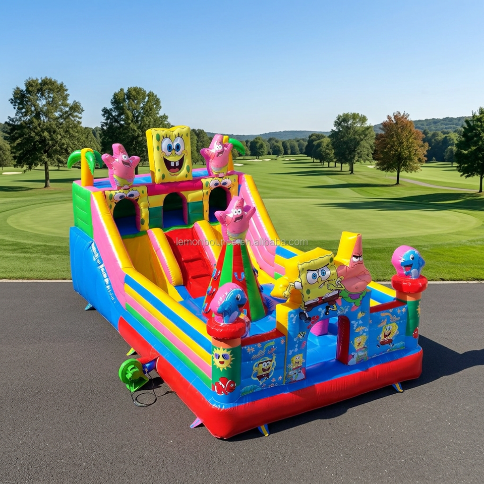 Castillo Inflable y Tobogán Acuático con Temática de Bob Esponja, de Grado Comercial, para Niños, Tamaño Personalizado, Alquiler Comercial, PVC, Fácil de Instalar, para Exteriores