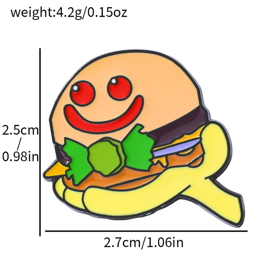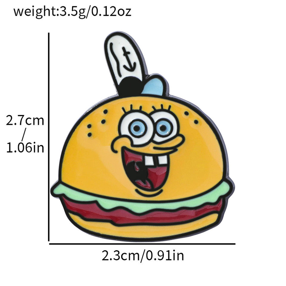 Insignia de Metal de dibujos animados creativos de Bob Esponja con forma de hamburguesa, Pin de esmalte suave, broche de aleación de latón para accesorios de sombrero