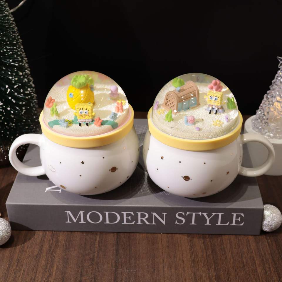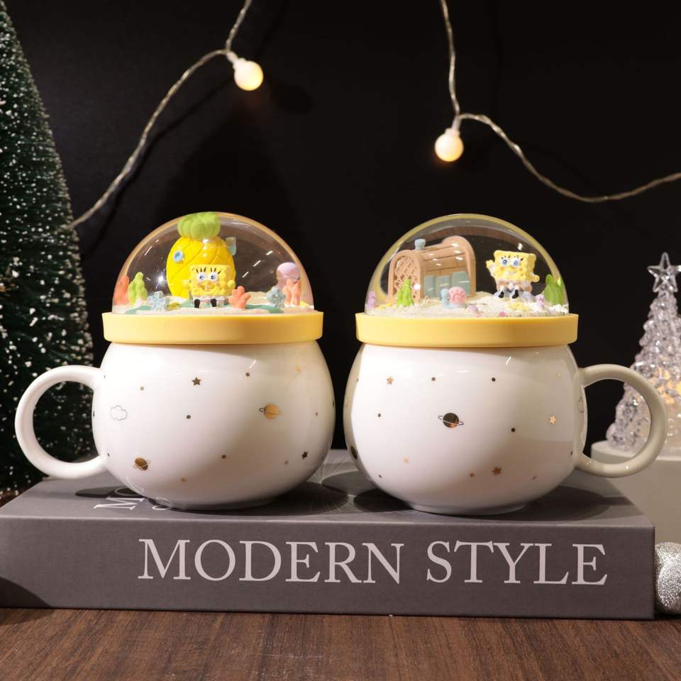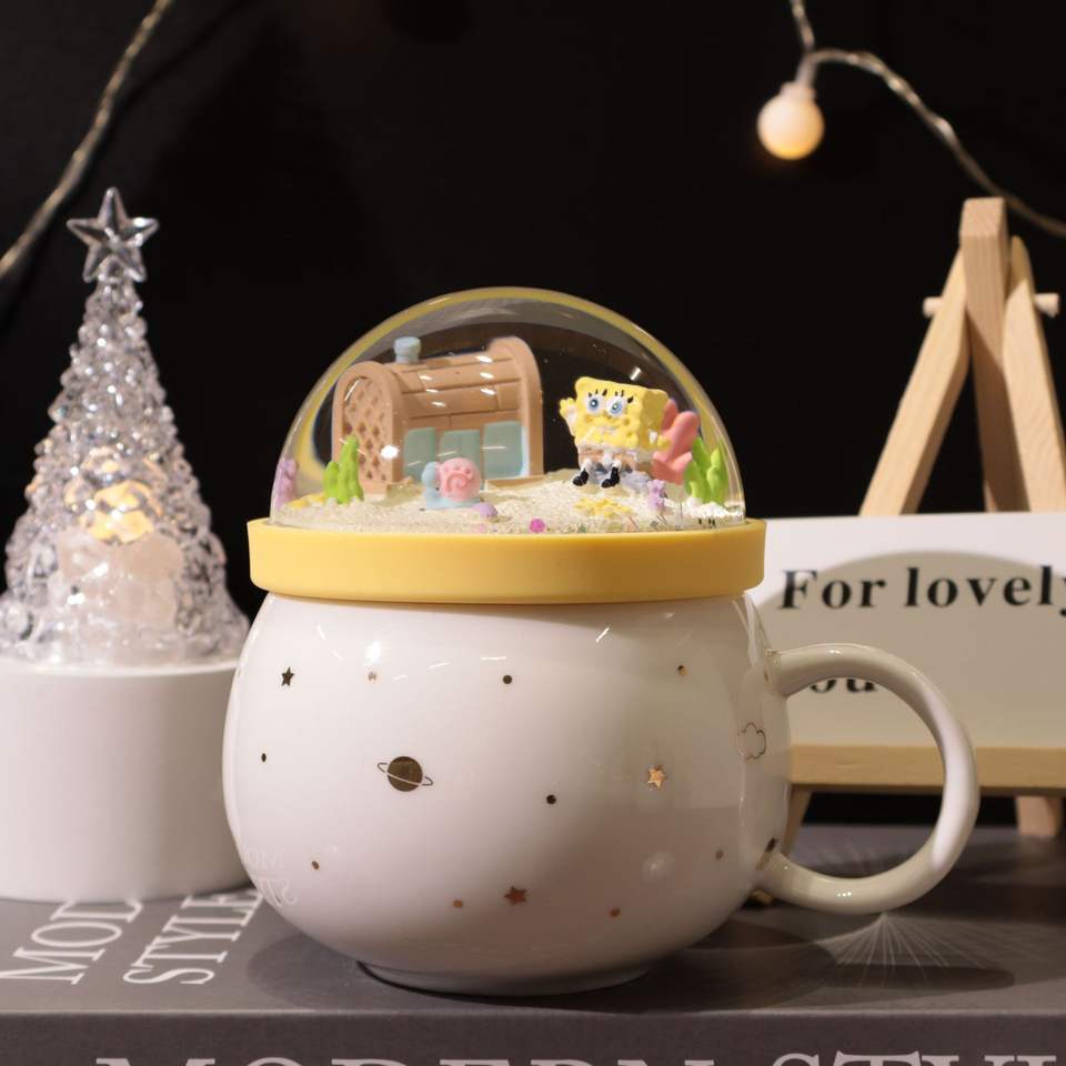 Taza de Cerámica con Tapa de Bola de Nieve de Bob Esponja, Diseño de Dibujos Animados, Micropaisaje, Directo de Fábrica, para el Día del Niño, San Valentín, Cumpleaños