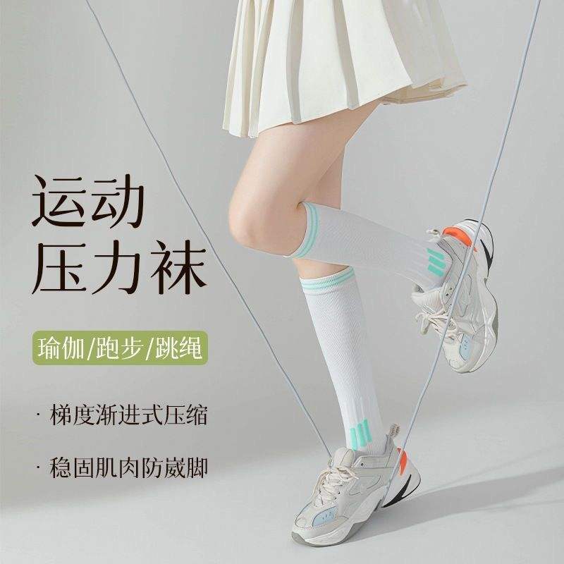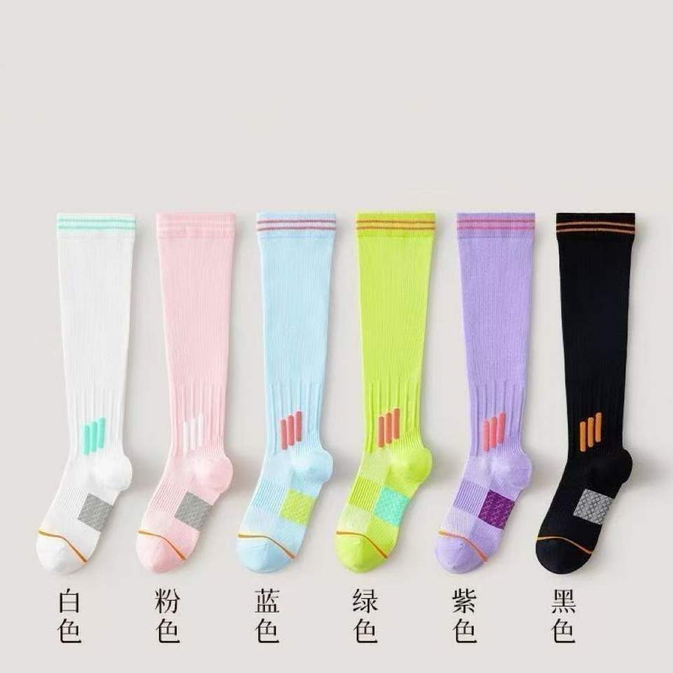 Calcetines deportivos de compresión hasta la rodilla, transpirables, para correr, yoga, entrenamientos físicos, tecnología Jacquard de grosor medio