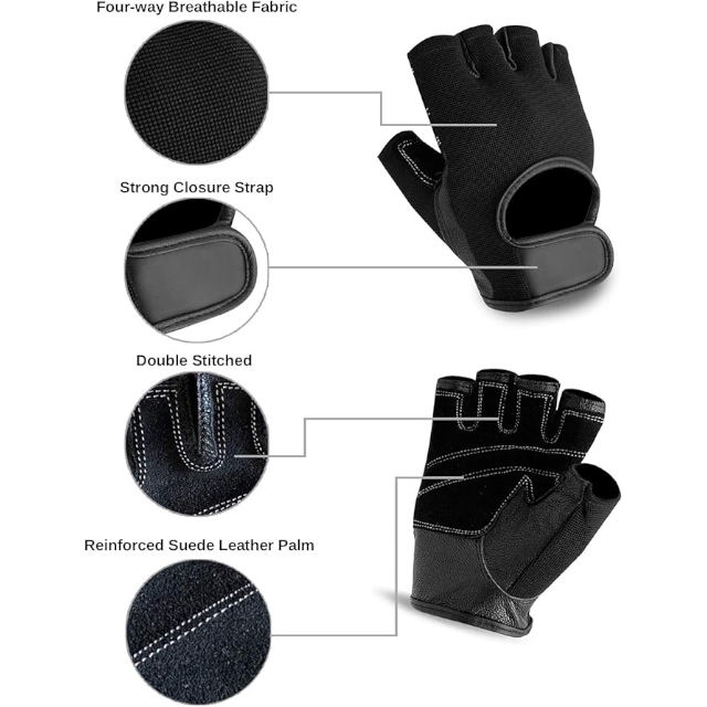 Antideslizante, Empuñaduras, Transpirable, Mitad de dedo/sin dedosCaracterísticas