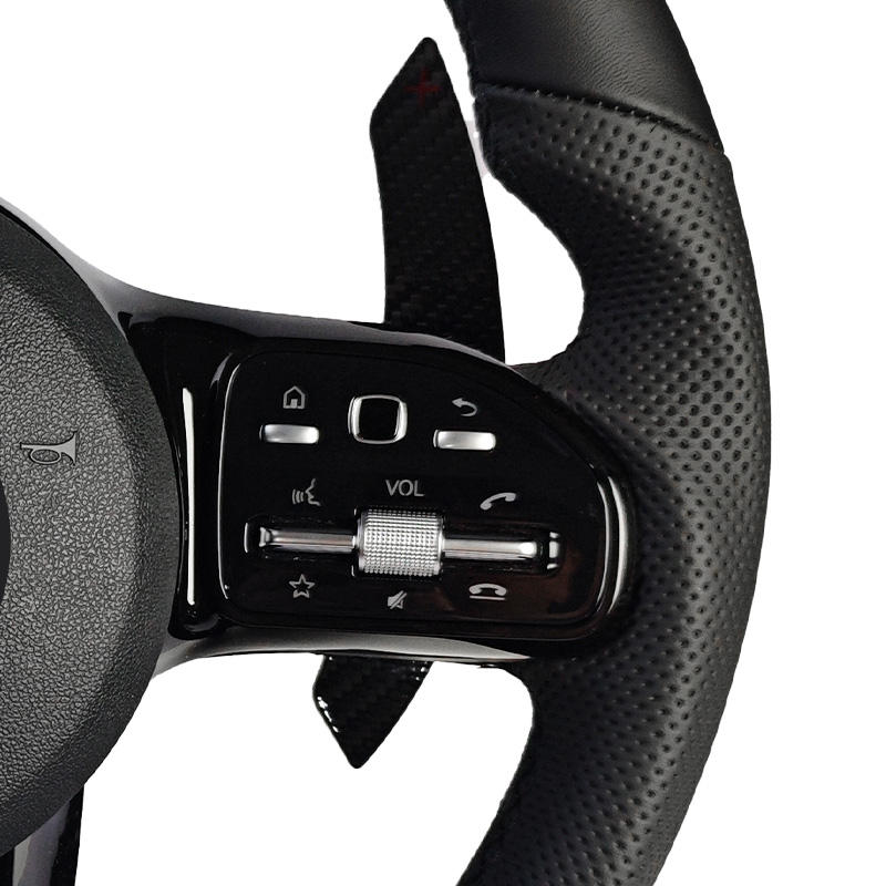 Volante modificado de paletas grandes de cuero deportivo para Mercedes Benz A GLA B GLB C GLC E GLE CLS