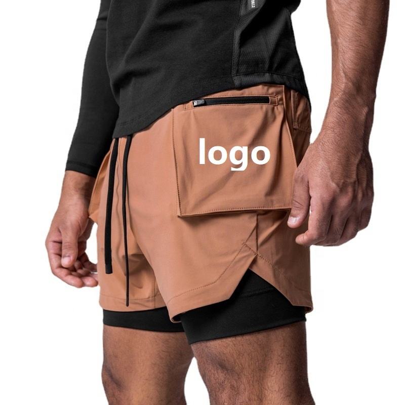 Pantalones cortos deportivos logotipo personalizado poliéster secado rápido 2 en 1 pantalones cortos hombres correr Fitness entrenamiento Jogger gimnasio pantalones cortos DDP envío