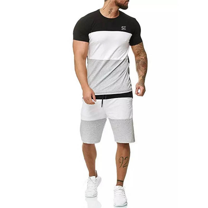 Conjunto Deportivo de Dos Piezas con Bloques de Color, Camiseta de Manga Corta y Pantalones Cortos, Reversible, Antibacterial, Ecológico, para Hombre, Invierno