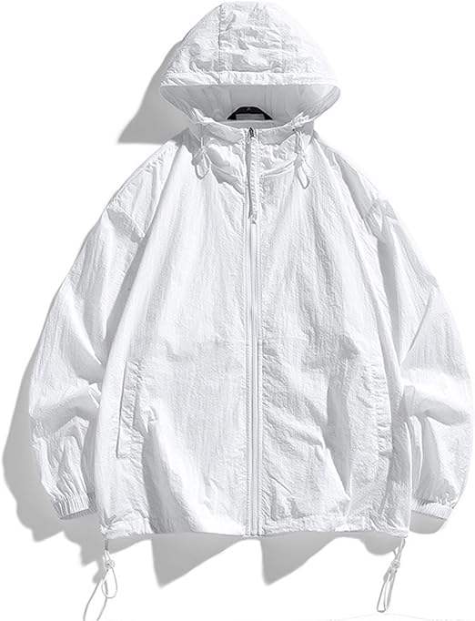 Chaqueta Cortavientos Deportiva Blanca para Hombre, Impermeable con Capucha, Transpirable, para Viajes, Campamento, Anorak, Correr, Senderismo