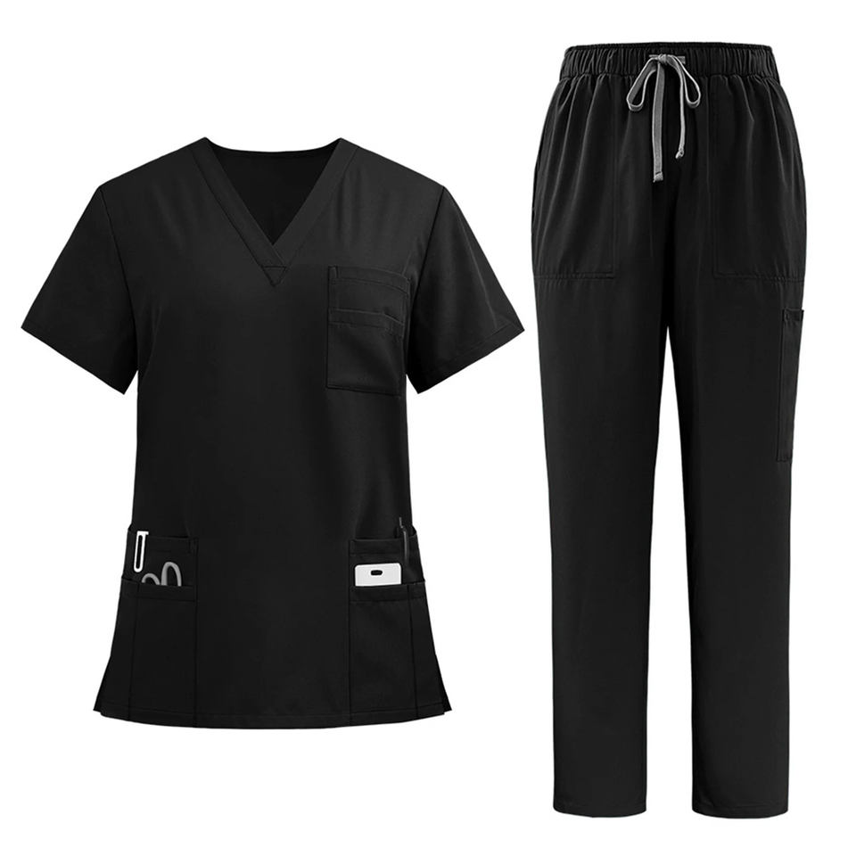 Diseño deportivo EE. UU. Etiqueta privada de moda Logotipo personalizado Trabajo Elástico Enfermera Tops Conjuntos Enfermería médica Conjuntos de uniformes