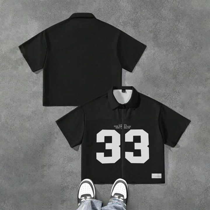 Camisa deportiva de manga corta con estampado de letras de retazos de malla para hombre, camisa con cremallera, camisas recortadas forradas de satén, ropa de calle, camisetas para hombre