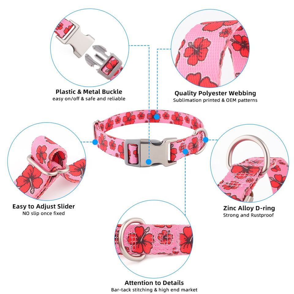 Spot Goods Varios diseños de transferencia de calor Collar de perro Mate Liberación rápida Hebilla de metal de plástico Collar ajustable para mascotas