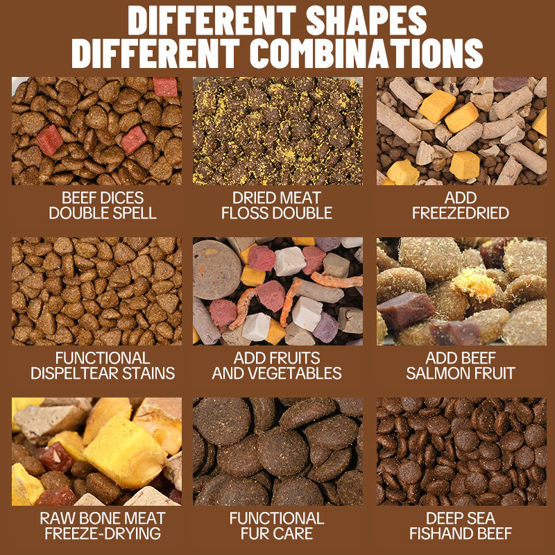 Ingrediente principal:carne de res, pollo, maíz, arroz, harina de trigo