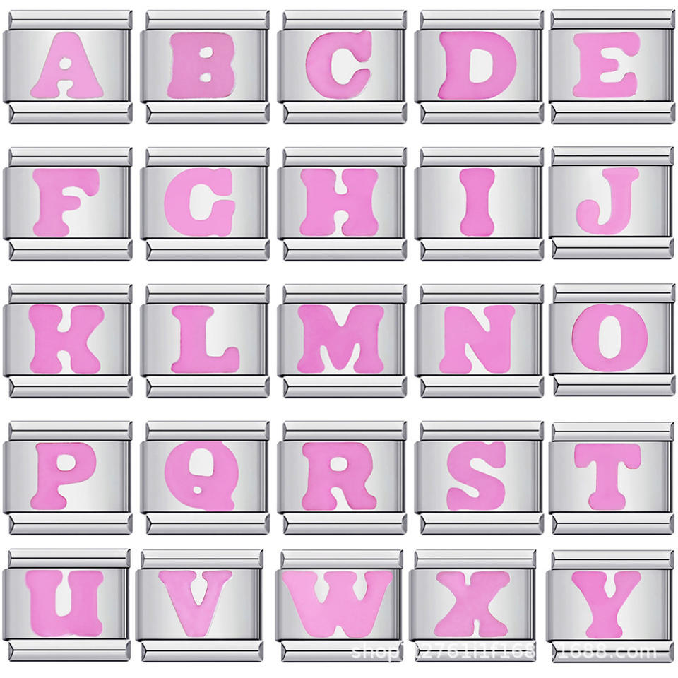 Componentes de Pulsera Italiana de Acero Inoxidable con Iniciales de Amor, Accesorios de Joyería Rosa para DIY