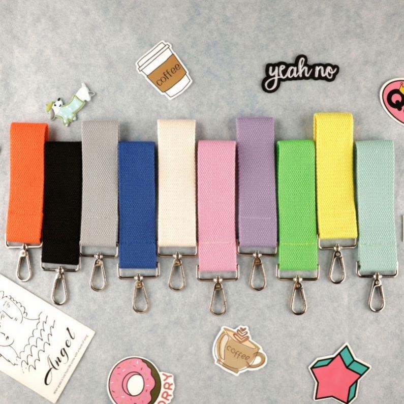Parches Termoadhesivos Personalizados de Corea de 32mm de Ancho en Colores Surtidos con Correa para Nombre y Llavero con Ganchos Plateados