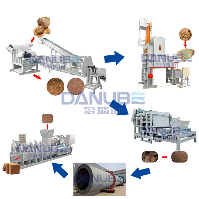 Máquina cribadora de fibra de coco, empacadora de fibra, máquina de bloques de turba de coco, etc.