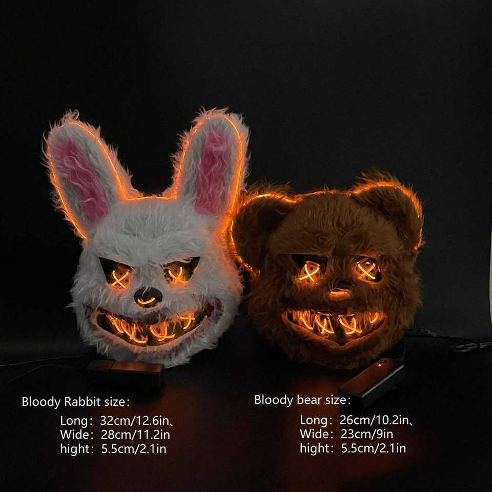 Máscara de Conejo de Peluche al por Mayor, Máscara LED de Terror con Luz Fría para Halloween, Máscara de Oso Sangriento para Halloween 2025