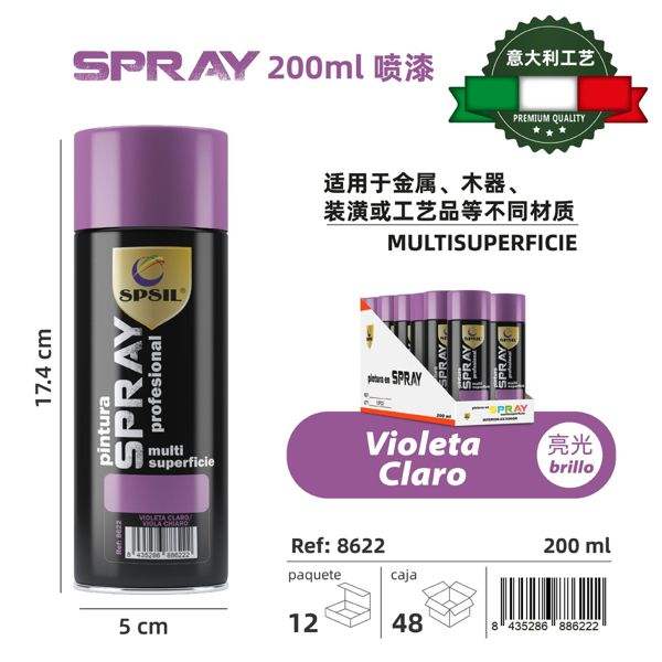 Pintura Multiusos en Aerosol de 200 ml, Color Violeta Claro, para Metal, Madera y Manualidades