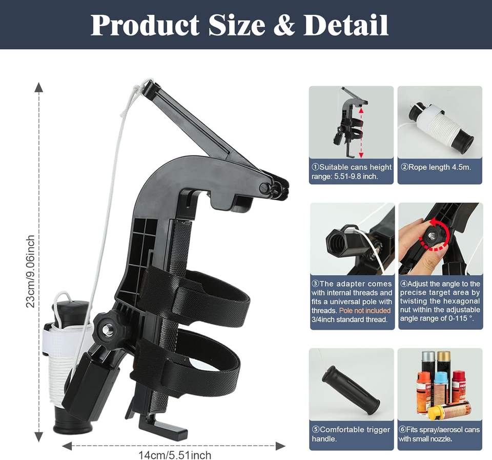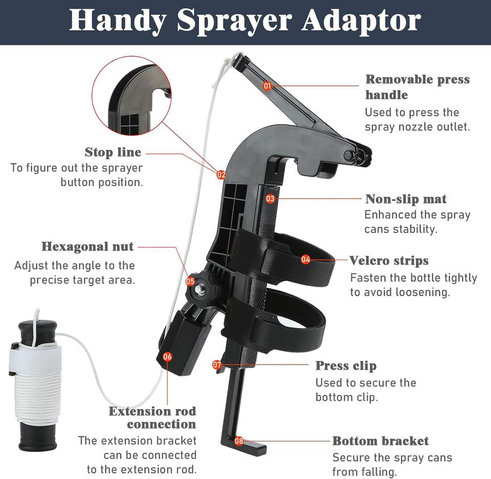 Adaptador de poste de extensión de lata de pulverización, adaptador de soporte de rociador de ajuste para Wasp/Hornet/Bee Spray de largo alcance