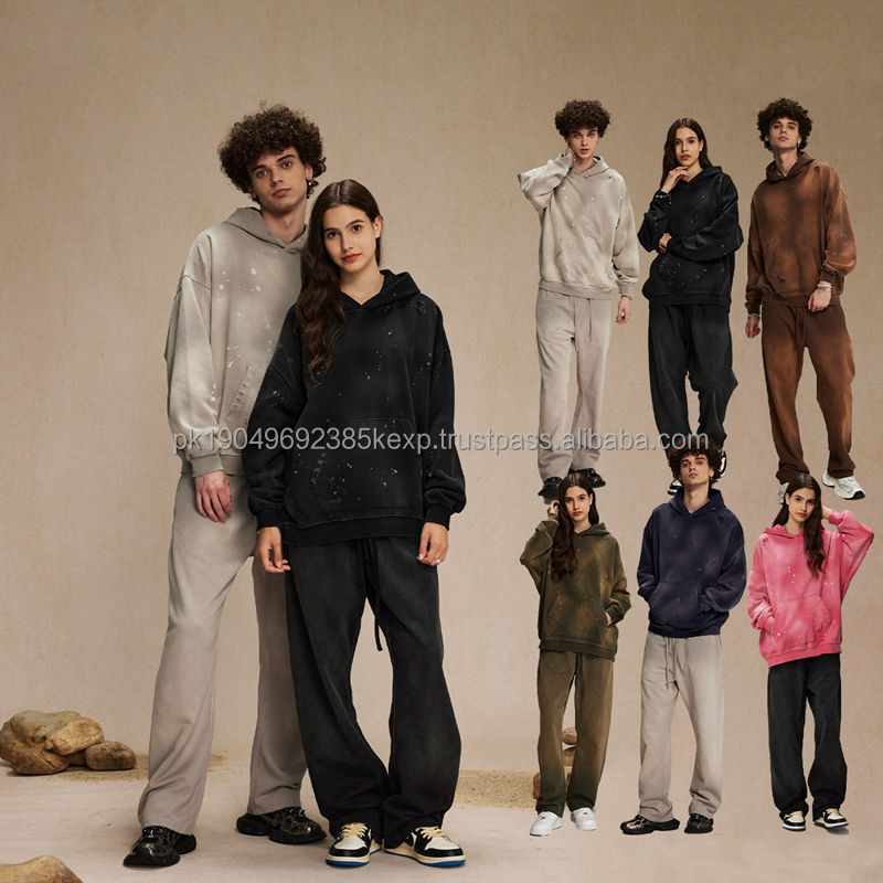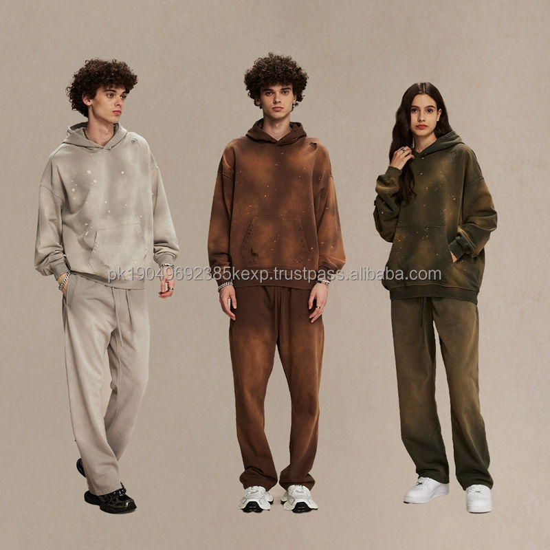 Sudadera Unisex Extra Grande de Felpa Francesa de 450 GSM Teñida con Spray, Estilo Vintage Desgastado con Salpicaduras de Pintura y Efecto Desteñido por el Sol