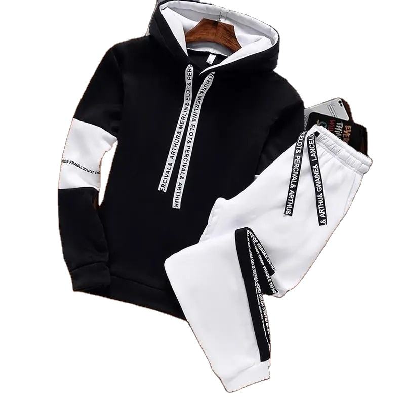 Conjunto Deportivo de Dos Piezas para Hombre, Transpirable, Estampado, Informal, Cómodo, Talla Grande, para Primavera y Otoño, en Blanco y Negro