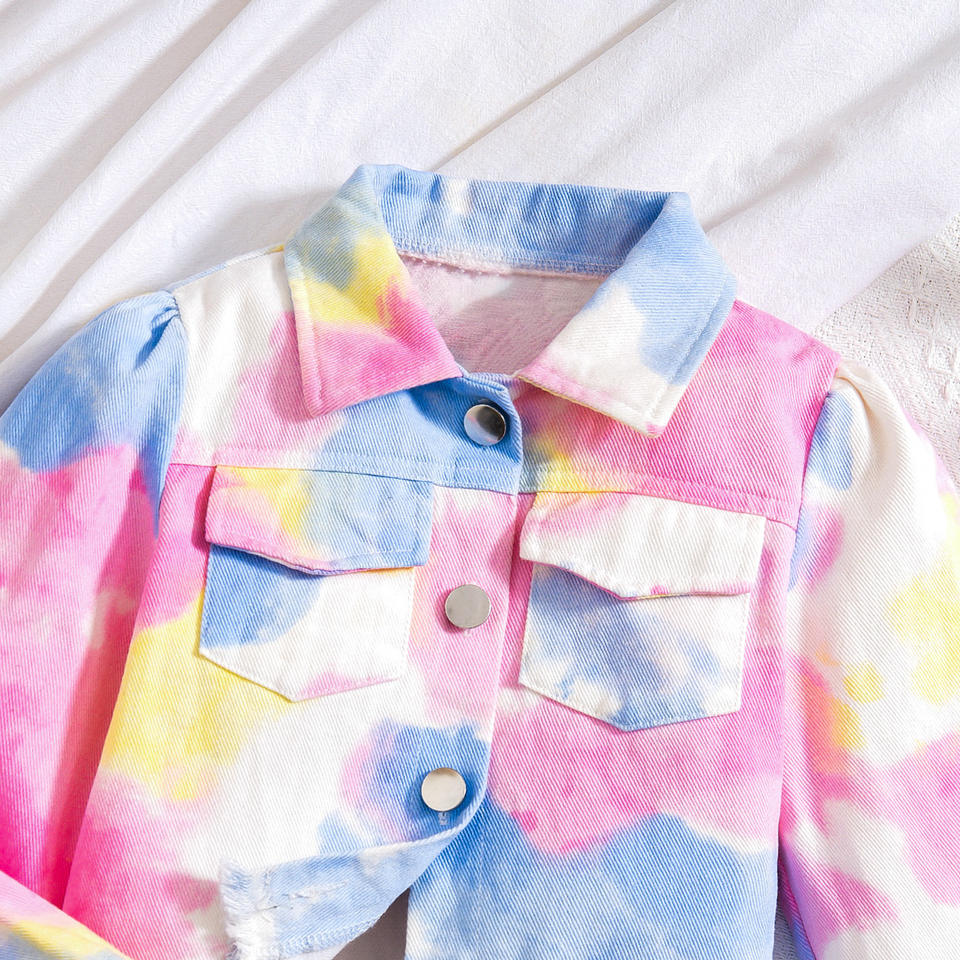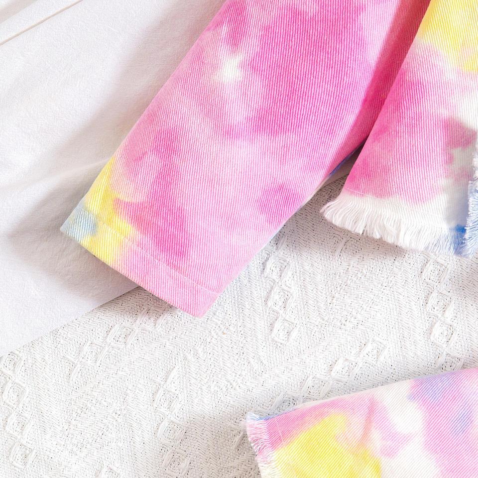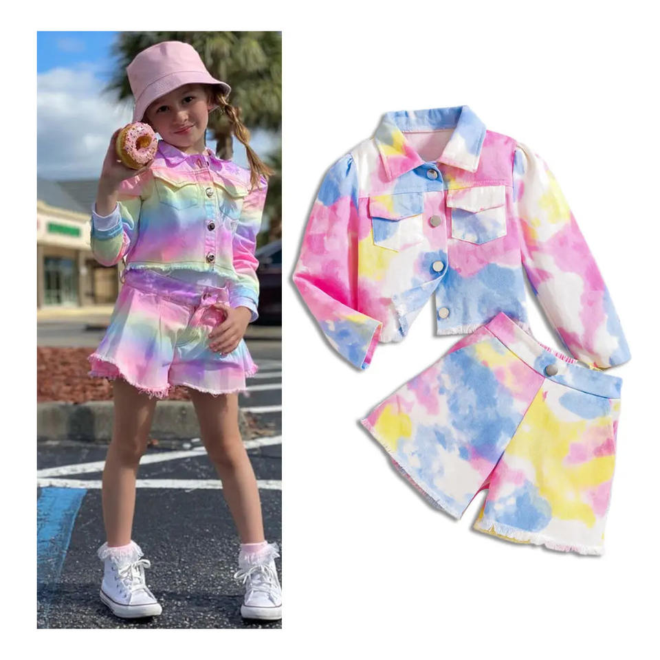 Tie-Dye Lapel Cardigan Jacket Shorts 2Pcs Children's Clothing