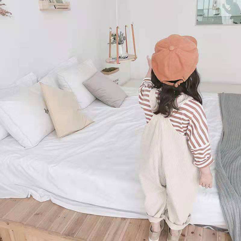 Conjunto de Mono de una Pieza para Niñas, Primavera-Otoño, Color Sólido, Overol de Pana para Niñas Pequeñas y Camisetas a Rayas
