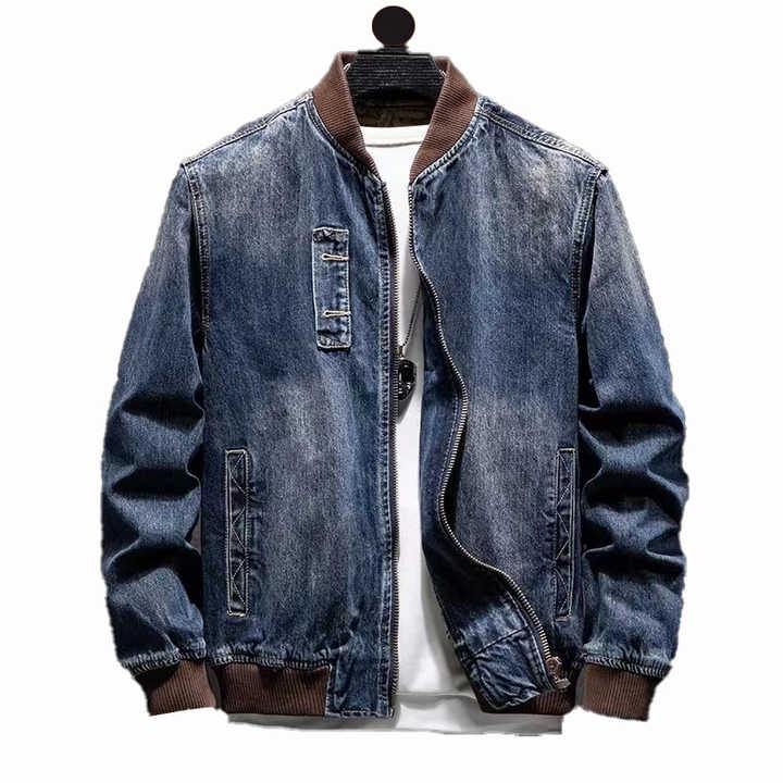 Chaqueta informal de primavera y otoño para hombre, chaqueta vaquera con cuello redondo personalizada de algodón 100% Vintage