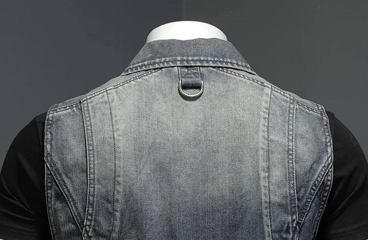 Chaleco Vaquero Retro Transpirable con Cremallera para Hombre, Estilo Europeo Americano, Motociclista, Vaquero, Casual, Tallas Grandes, Lavado, Primavera Otoño