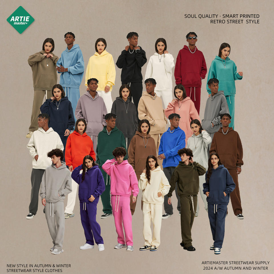 Nueva colección primavera/otoño - Conjunto holgado para hombre de sudadera con capucha y pantalón forrado de vellón de algodón, estilo oversize, patrón liso, resistente a las arrugas