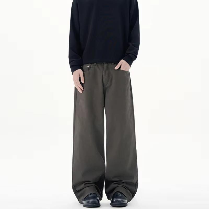Pantalones Vaqueros Rectos de Mezclilla para Hombre, Talla Grande, Estilo Retro, Cintura Media, Cierre de Cremallera, Casuales, Personalizados, Venta al Por Mayor, Primavera-Otoño