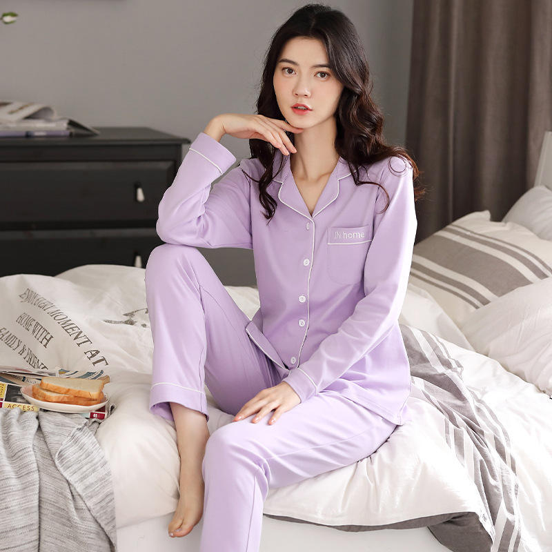 Conjunto de Pijama de Primavera y Otoño para Mujer, Manga Larga, Algodón, Color Rosa, Ropa de Dormir para el Hogar