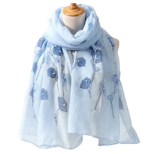 Bufanda de Fibra de Poliéster con Diseño Floral para Mujer, Estilo Chino, Pintada a Mano, Transpirable, Ideal para Viajes, Primavera/Otoño